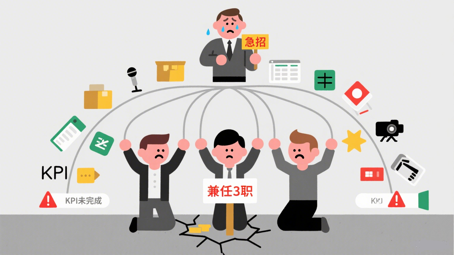 还常存在“一人多岗”的情况,运营兼客服、主播写脚本,员工疲于琐事没精力提升,能力停在基础执行;