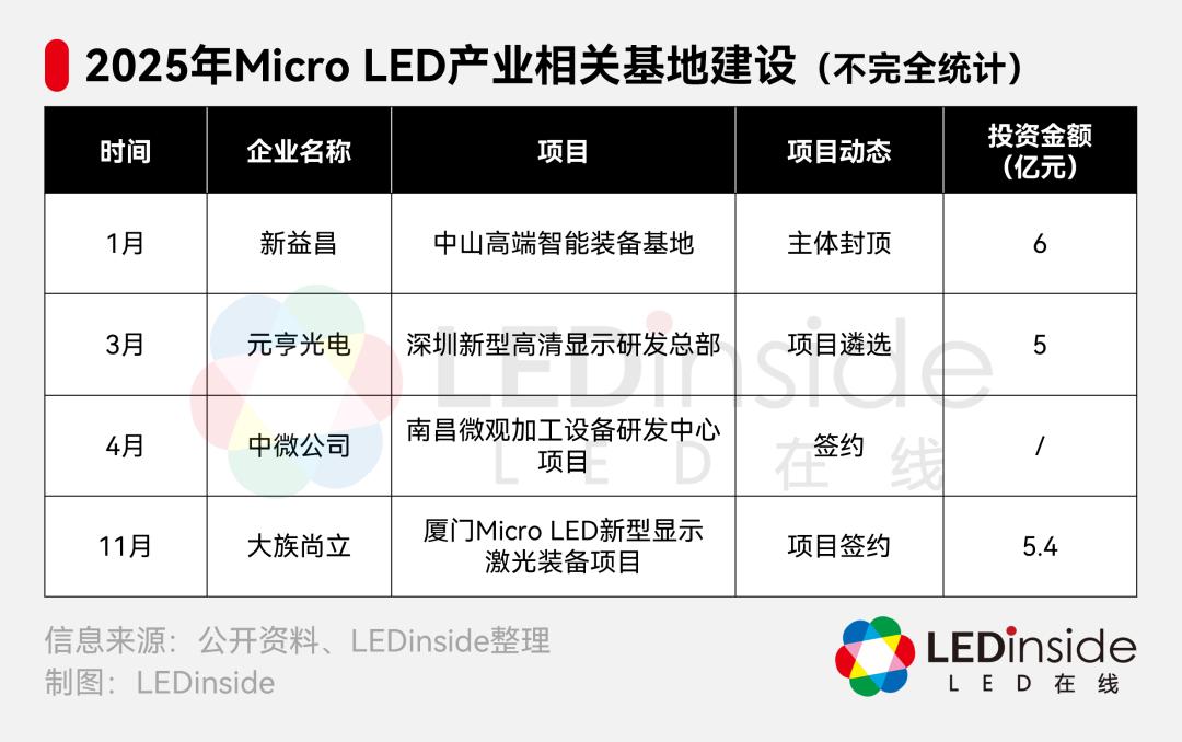 除了设备层面的交付与创新,2025年Micro LED产业链的另一大特点是产业基地的实体化落地。在各大设备商的最新建设项目中,Micro LED应用设备的生产、开发均成为焦点。