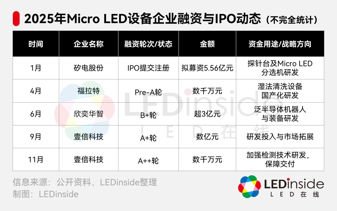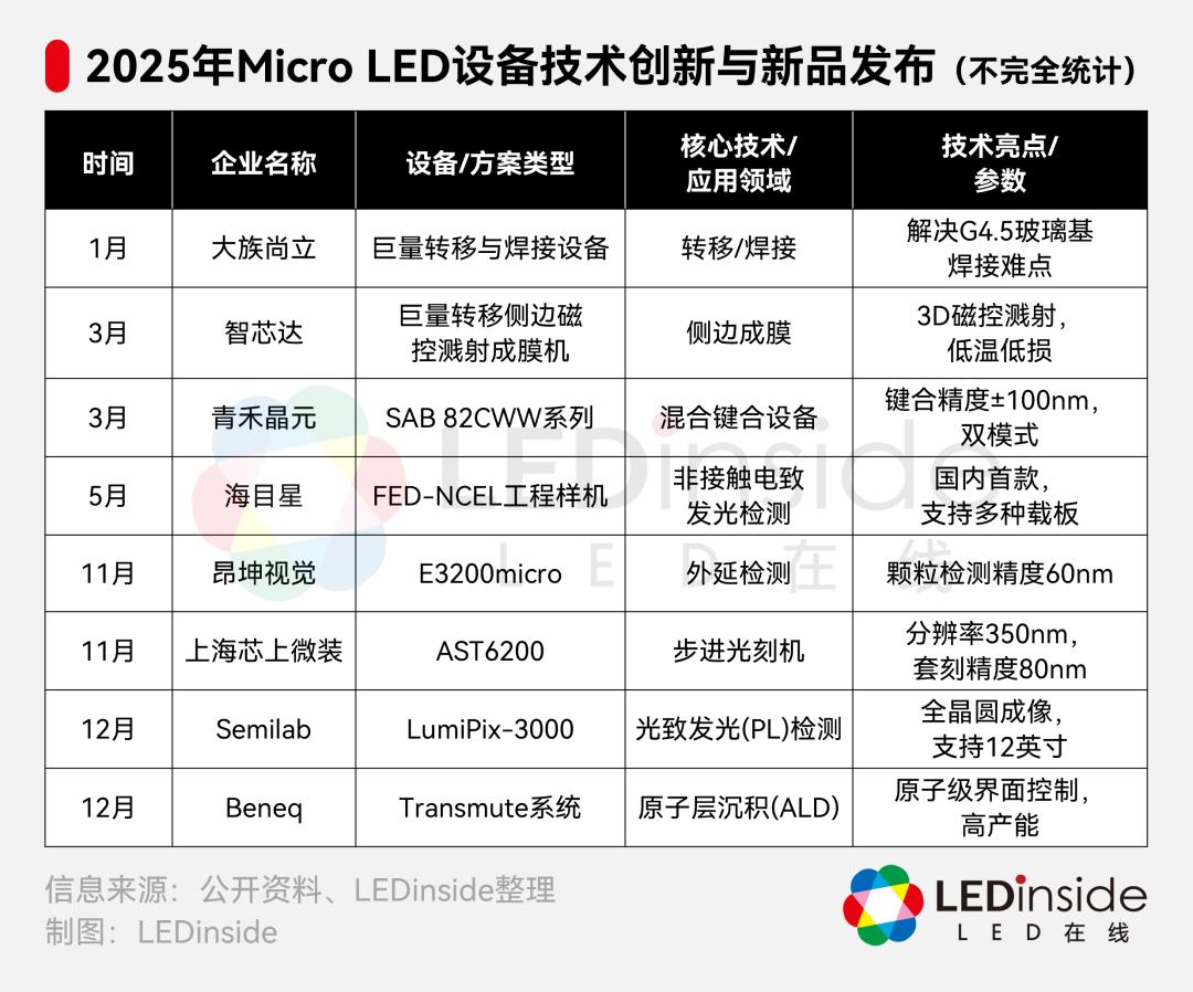 回顾2025年全年,Micro LED设备赛道则呈现出显著实战化特征,行业内接连传来设备厂商在融资、新品发布及重大合作方面的消息。